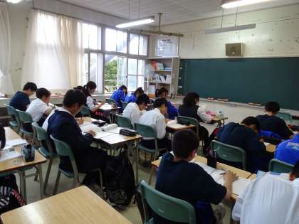 前期期末テストで悔いを残さないように、放課後まで自主的に残って学習する姿が輝いて見えました。