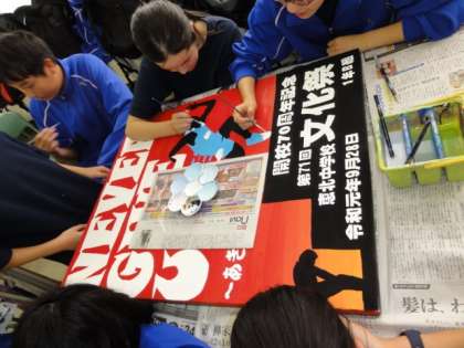 9.26 文化祭活動ラストスパート 公開日 2019/10/01 更新日 2019/10/01 お知らせ いよいよ明日が提出日となり、動きに緊迫感が見られてきました。もうひと頑張りして、納得のいく作品にしましょう。