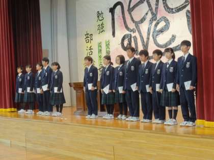 バトンを受け渡された新生徒会の皆さん、よろしくお願い致します。