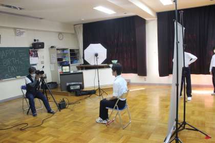 卒業アルバム用個人写真の撮影が行われました。今後に予定されている各種行事の様子も撮影していただく予定です。感染対策のため従来とは異なる内容の行事かもしれませんが、その中でも素敵な思い出をたくさん残してほしいと思います。