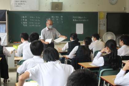 二日間にわたって行われた前期期末テストが終わりました。3年生は休む間もなく来週10日が学力テストAとなります。4校時の学活では、進路だよりをもとに担任の先生からテストに向けた心構えや自己採点の仕方について説明がありました。一人ひとりが努力を積み重ね、卒業後の希望を実現してくれることを願っています。