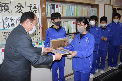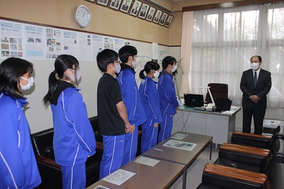 今朝、生徒会役員選挙の開票結果が発表されました。新生松三会の体制も整いつつあります。これまで第一線で活躍してきた3年生役員の活動も残りわずかです。今日の昼休みに現役員が校長先生からねぎらいの言葉とともに文化祭当日に撮影した役員の集合写真をいただきました。現役員の皆さん、お疲れ様でした。新役員体制へのサポートをよろしくお願いします。