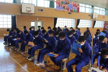 本日1年生は校外学習に向けて、2年生は宿泊研修に向けて学年集会が行われました。1年生にとっては学校の外で学習する初めての行事です。地域産業に触れることで様々な職業への学び・関心を深めて欲しいと思います。宿泊研修ではグループに分かれて行う自主研修を通して計画力・実行力を養い、来年に控える修学旅行に繋がる経験となることを期待します。それぞれ安全に配慮して明日出発します。