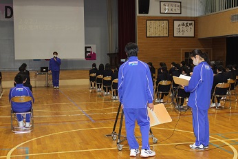 本日、対面式が行われました。新一年生は、生徒会役員が作成した「恵北中生一日の流れ」や上級生による部活動紹介を見て楽しみながら、中学校ならではの生活をイメージすることができたと思います。この日のために撮影や発表練習を頑張ってきた2,3年生のみなさん、頼もしく面白い先輩の姿を見せることができましたね。