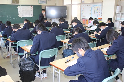 今日は全学年、標準学力検査に挑んでいます。学校では生徒の前年度の学習内容の定着度合いや課題などを分析し、「主体的・対話的で深い学び」につながる授業改善に努めていきます。