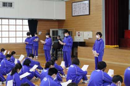 4月が終わり、新1年生を迎えて各部の活動が軌道に乗ってきました。部活動の心得や部としての目標を確認するため、部活動結成集会が行われました。来月には市内中体連が予定されています。各部活、目標に向かって一生懸命練習に取り組み、心身共に大きく成長してくれることを期待します。