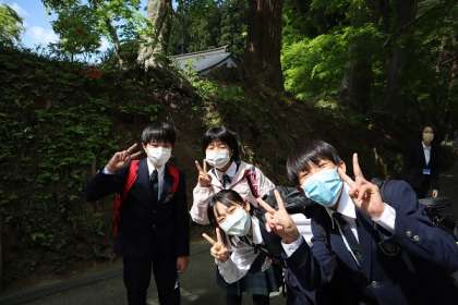 最終日は、世界遺産である中尊寺金色堂を訪れました。ガイドさんの説明を熱心に聞きながら見学を進めていく中で、実際に金色堂を目にした生徒たちの口からは思わず「おぉぉ」と感動する声が漏れ出ていました。本堂では、受験を控える3年生なので合格祈願のお守りを購入する生徒が多数いました。日ごろの行いが良いみなさんには、きっとご利益があることでしょう。