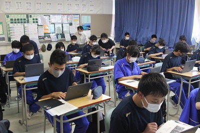 一人一台端末(クロームブック)を活用した学び「GIGAスクール」の校内環境が整いました。今日の5時間目に全校生徒で自分のクロームブックを起動させ、使い方などについてのオリエンテーションを行いました。教科書やノート、筆記用具と同じような授業道具としてクロームブックを使いこなしながら学びを深めていきましょう。