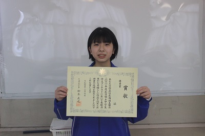 北海道が主催する「北方領土中学生作文コンテスト」において本校3年生の作文が優秀賞を受賞しました。本日のGL集会で校長先生より賞状の伝達を行いました。受賞、おめでとうございます。