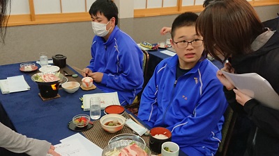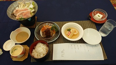 本日の夕食は豚しゃぶですね。2日めの行程を無事終えました。