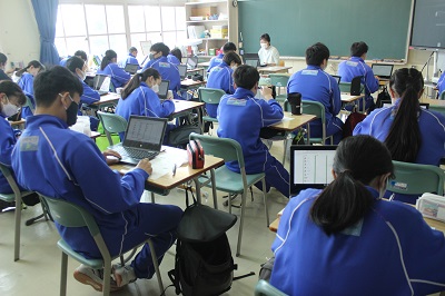 3年生が「総合的な学習の時間」に上級学校調べを行っています。今回は各自で適職診断を行い、気になる職業やなりたい職業について、その職業に就くまでの過程や必要な資格、実際の仕事内容等について調べました。今後、調べた内容についてchromebookを使ってまとめていく予定です。
