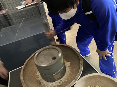 最後には石臼で大豆を挽く体験を楽しんで、資料館を後にしました。