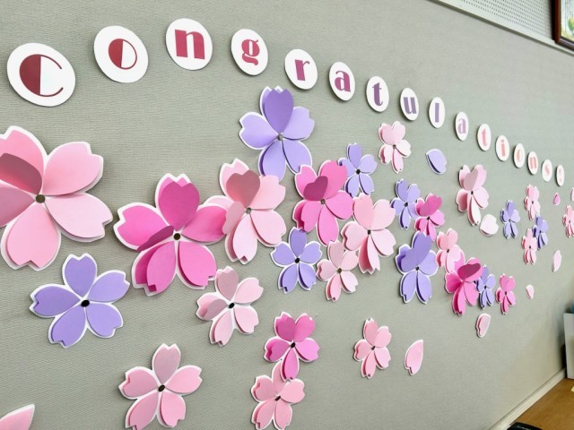 図書館が桜で彩られ、日焼けしていた本棚の表示板も新しくなったので図書館全体が明るい雰囲気になりました!