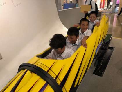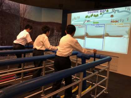 札幌オリンピックミュージアムの体験アトラクションは大人も子供も楽しめるため、引率している私も生徒と汗をかいています!
