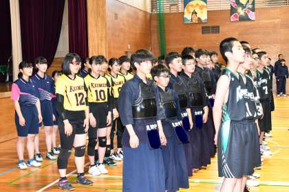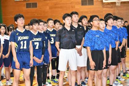 管内大会に進出する各部が揃い、全校生徒の前で決意表明を披露しました。
