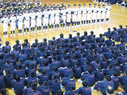本日5時間目、体育館にて管内大会壮行会が開かれました。