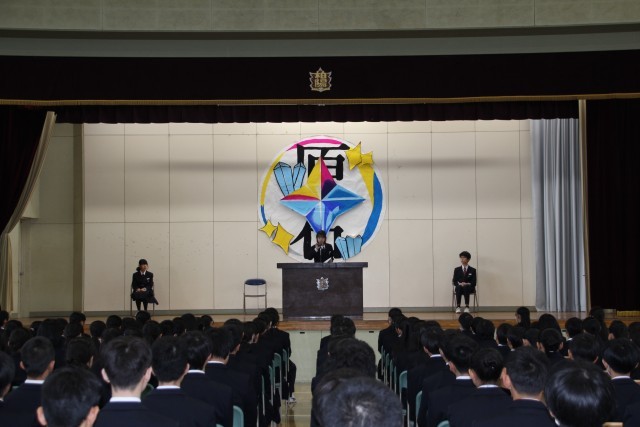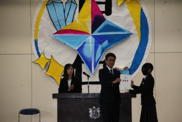 前期終業式を行いました。式では、校歌を響かせ、校長先生、各学年代表の話、伝達表彰を行いました。