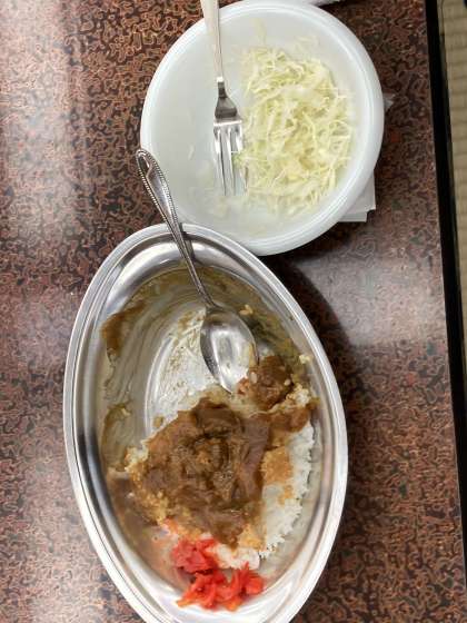 最終日の昼食は、インデアンカツカレーです。写真は食べている途中のものです💦