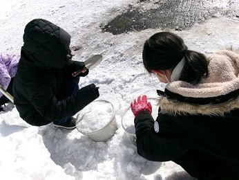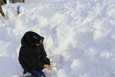締めくくりとして、明日行われる「シーニックナイト」に向けてスノーランタンを作りました。
