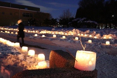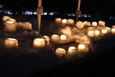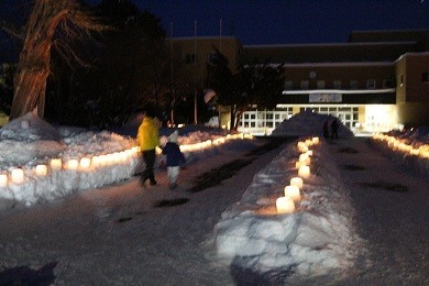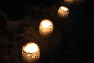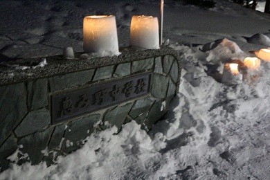 そのスノーランタンに保護者・地域のおやじの皆様が火を灯し、