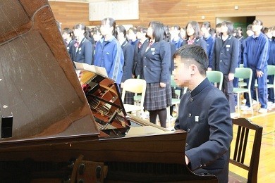 13日(金)の卒業式に向け、1・2年生合同の合唱練習が始まりました。